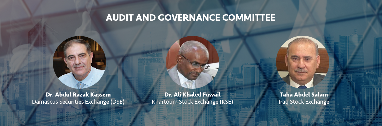 إنتخب أعضاء مجلس إدارة إتحاد البورصات العربية لجنة المراجعة والحوكمة في 3 نوفمبر 2020 وهي مؤلفة من